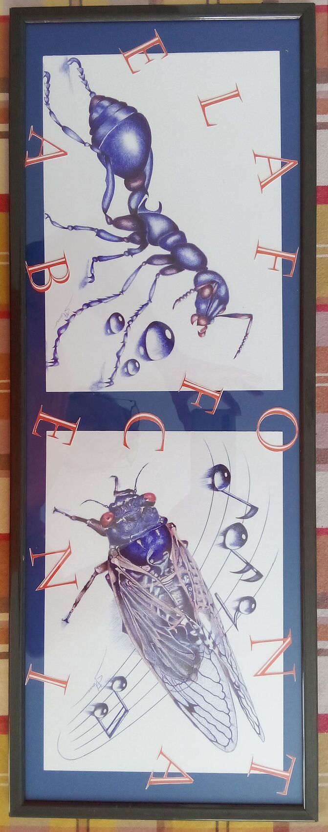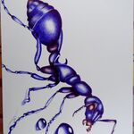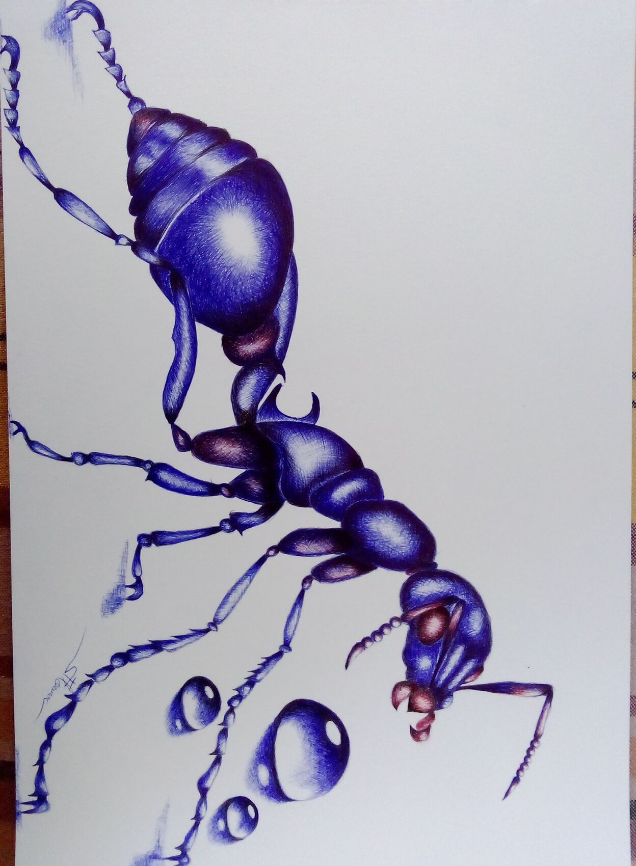 Dessin au stylo Bic sur papier fort grammage. Encadré sous verre avec la fourmi.